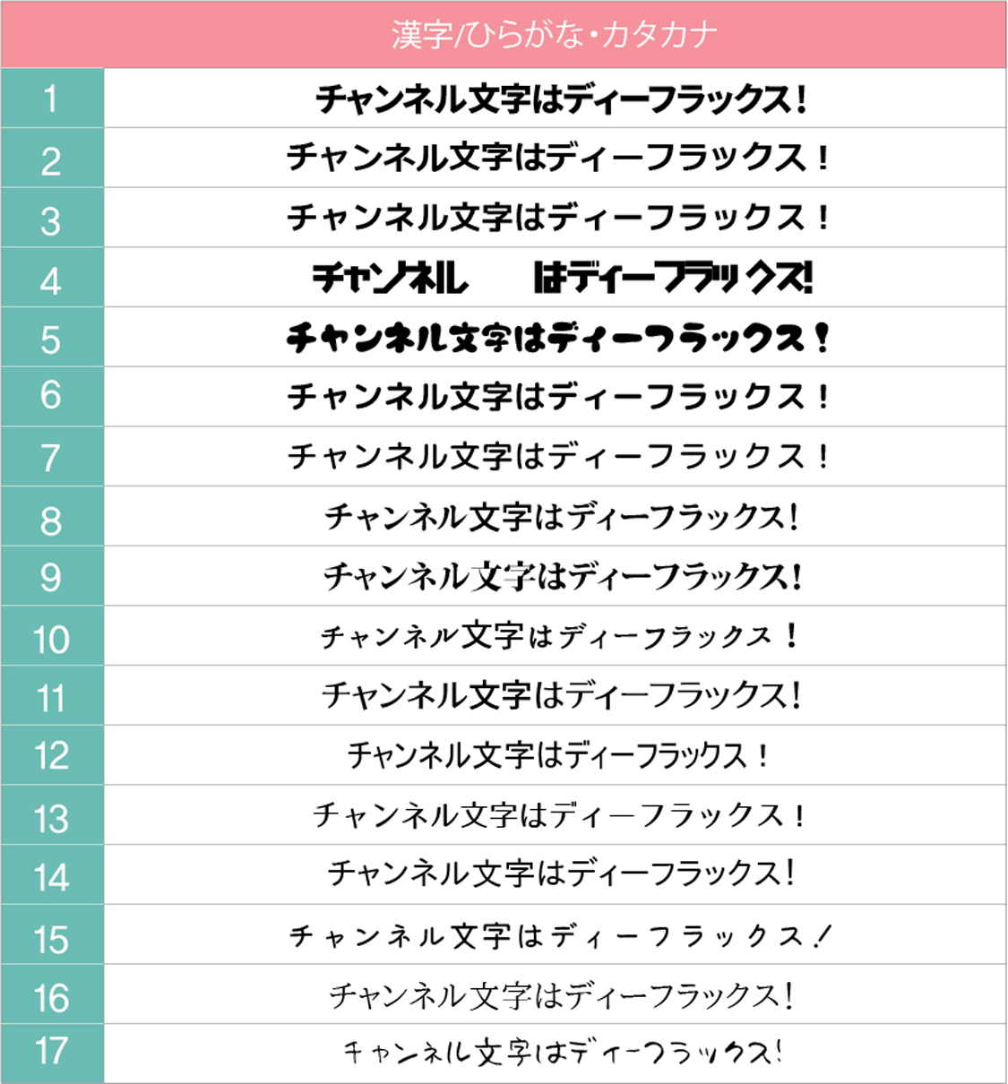 1.図案デザイン下記のフォント表からご希望の書体番号をお選びいただき、お見積りフォームの欄に追加でご記入ください。
